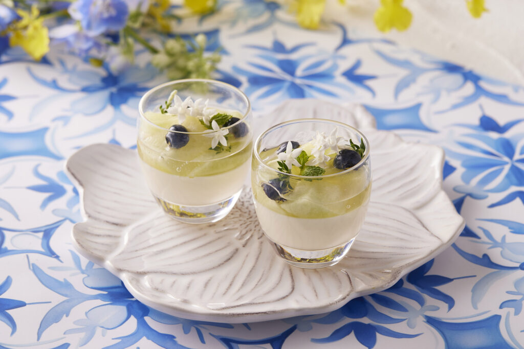 松川星が好きなカスミソウが可憐に広がる、メロンのパンナコッタ