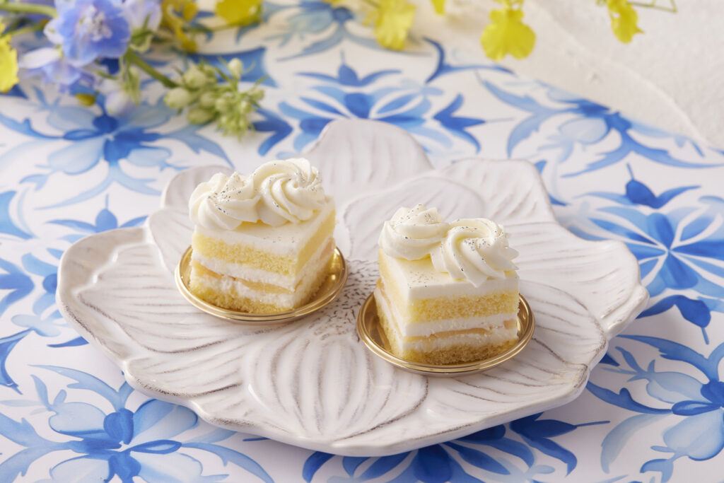 「白い薔薇の洋梨ショートケーキ」「レモンのタルト カモミール仕立て」「チューリップをのせたマカロン(パイナップルクリーム)」