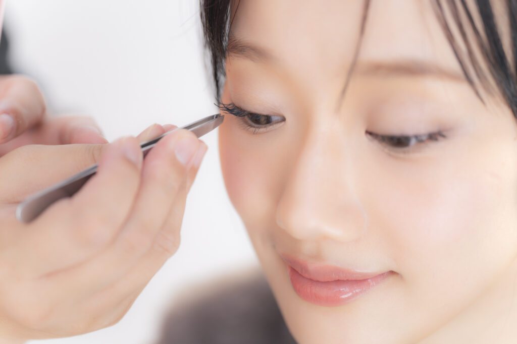 ③仕上げにピンセットを使って、まつ毛に束感をつけていきます。細かな毛束をたくさん作ったほうがくっきり&ふさふさな印象に。毛束が太すぎると、逆にスカスカな印象になるのでNG。