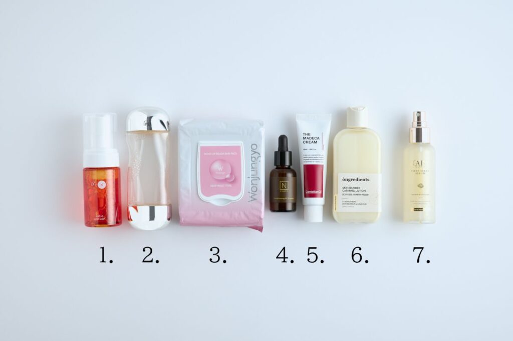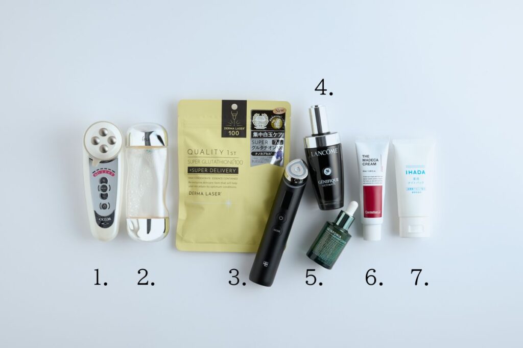 そのあと、シートマスク「QUALITY 1ST ダーマレーザー スーパー グルタチオン100 マスク」を使い、その上から「medicube AGE-Rブースタープロ」を使ってしっかり浸透させます。このシートマスクはふっくら保湿してくれるし、グルタチオンが入っているのでお顔も明るくなる気がします。そのあと美容液は、ニキビが気になったり肌が荒れているときは「SKINFONIA バランス リペア セラム」を代わりに使います。クリームは「Centellian24 マデカクリーム」です。これはどの肌状態でも使っています。