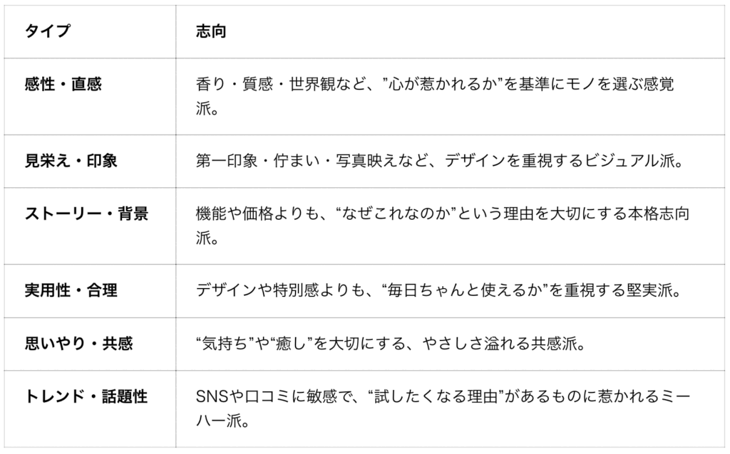 6つの「ギフト志向タイプ」は以下のような分類になっています。