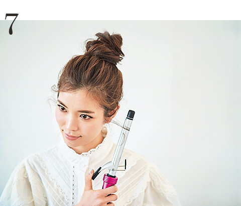 お団子を作る時は、ゴムよりもホールド力のある、ねじねじピン。根元に差しこんで固定します。髪の多い人におすすめ。