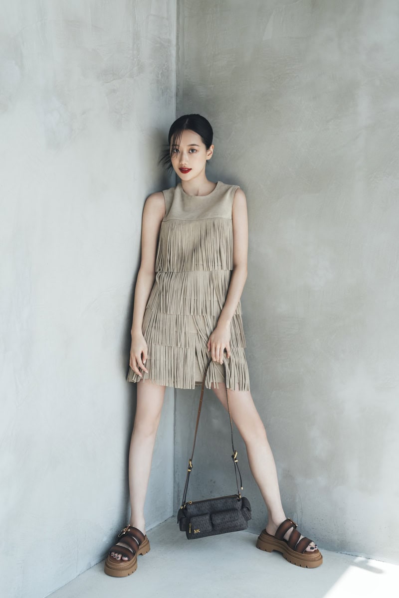 ワンピース¥77,000・バッグ¥83,600・サンダル¥26,400(MICHAEL Michael Kors/マイケル・コースカスタマーサービス)