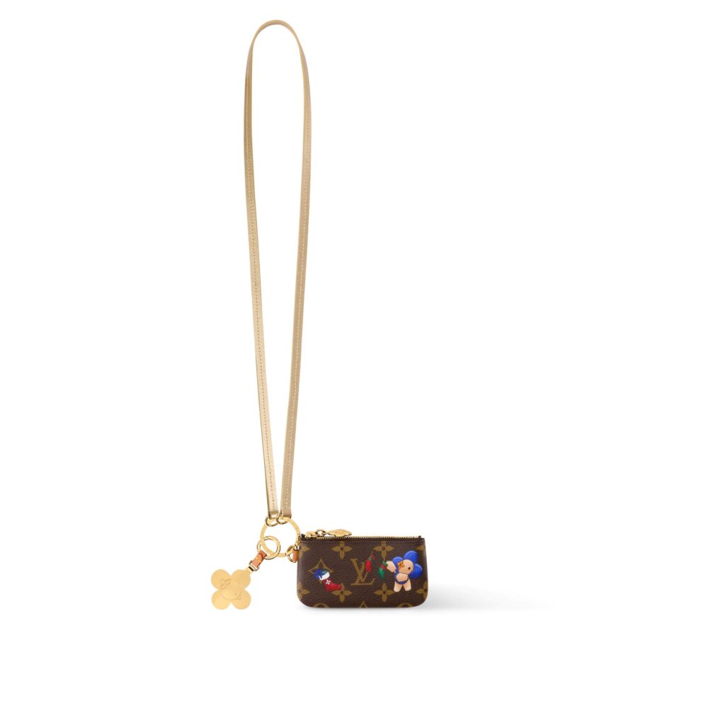チャームとファスナーの引き手だけでなく、モノグラム・キャンバスを使用した取りはずし可能なポーチにも「ヴィヴィエンヌ」があしらわれています。アイスゴールドのレザーストラップとゴールドの金具を組み合わせた大人っぽい仕上げです。[W12×H6.5×D1㎝]¥146,300
