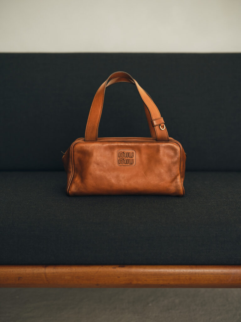 ミュウミュウならではの視点でクラシックなフォルムを再構築したモデル。タイムレスな美しさと機能性をまとめた仕上がりで、カラーはブラウン、ブラック、ホワイトの3色がラインナップ。