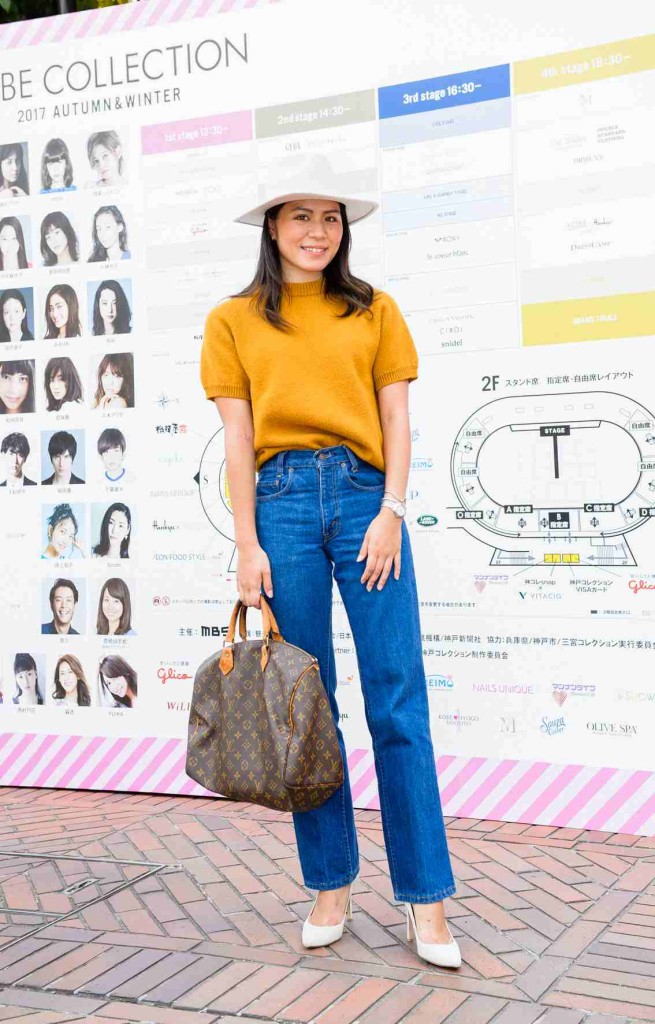 「神コレに来るのは初めてで、憧れの浦浜アリサさんも見ることができて嬉しかったです!秋色はまずマイ定番のワイドデニムに合わせました。L.Aの古着屋で購入したマスタード色のトップスはゆるすぎず、ぴったりしすぎず◎。ハットでマニッシュさを投入します。」