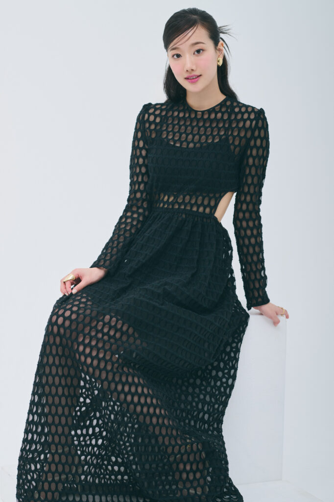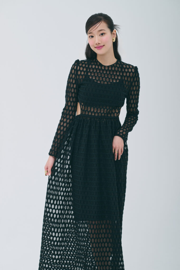 イヤリング¥4,320 (アビステ)リング¥6,600(loni/アンティローザ)ドレスはスタイリスト私物