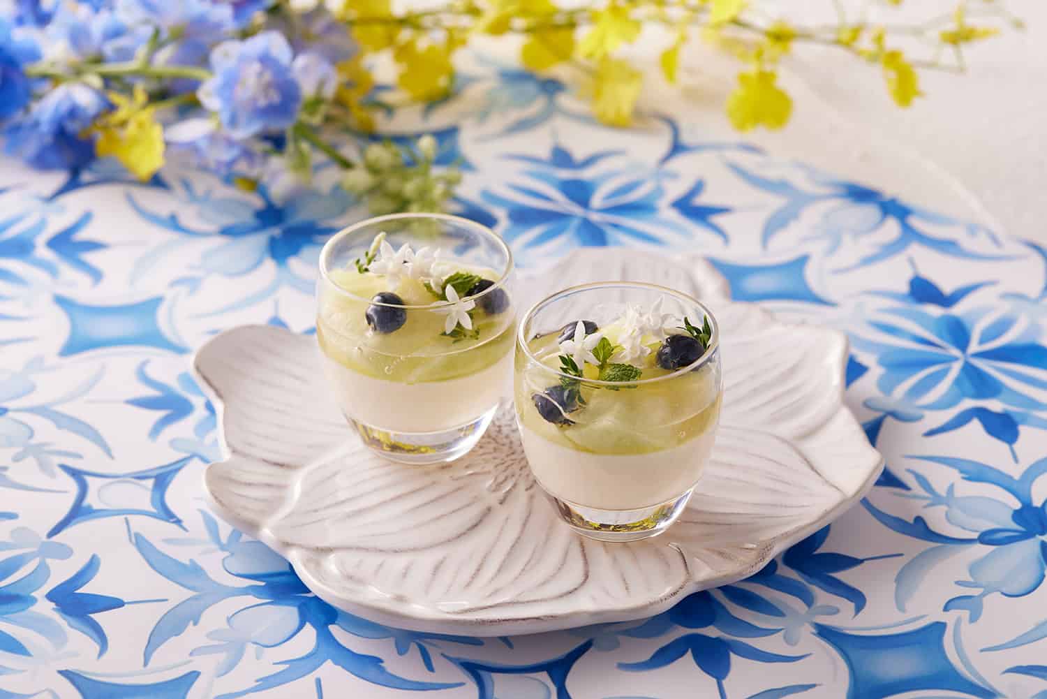 松川星 コラボメニュー『メロンのパンナコッタ カスミソウ仕立て』