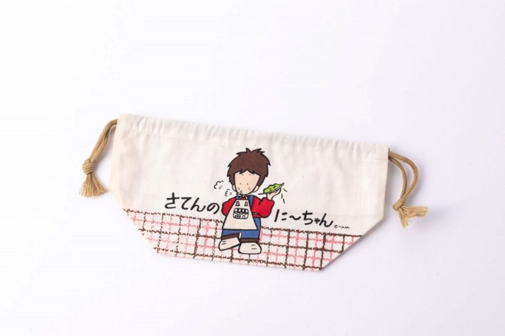 ゆかしなもん先生:お弁当を入れるための巾着です。くわえタバコでメニューを運ぶ姿は令和には衝撃的かもしれませんが、当時はリアルに見かけた光景です。
