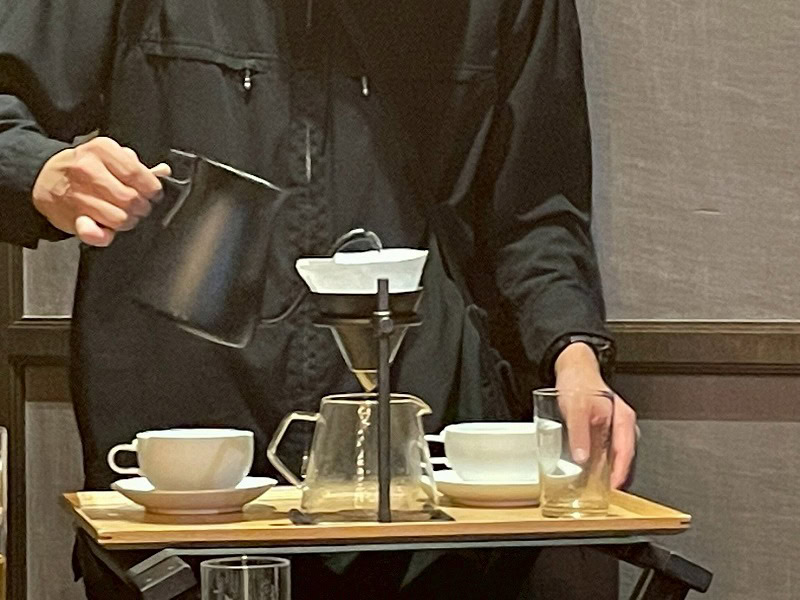食後のドリンクにはスペシャルティコーヒーをチョイス。一つ一つ丁寧に3分かけて目の前でドリップしてくれます。