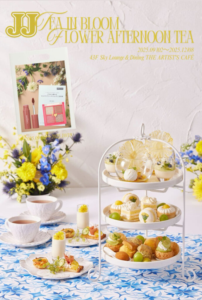 セントラルパーク芝生広場のWONDER SNOW TREEからほど近くにある東京ドームホテルの43階にある、スカイラウンジ&ダイニング 「アーティスト カフェ」では、現在JJとのコラボアフタヌーンティー『Tea in Bloom~好きを纏って自分に甘いご褒美を~』を12月8日(月)まで絶賛開催中。ご注文のお客様にご褒美コスメをお渡ししており大好評♡ また、アーティストの聖地でもある東京ドームに隣接したこの会場は、推し活を楽しむスポットとしても人気。