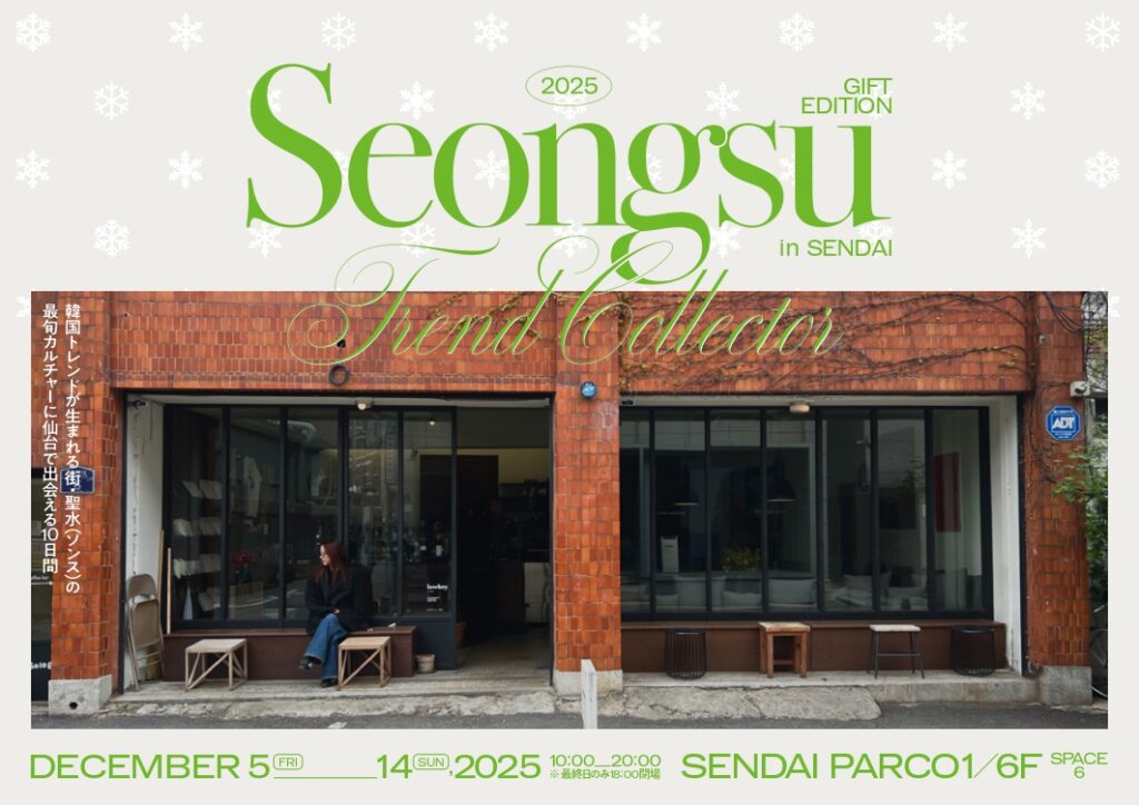 2025年12月5日(金)~14日(日)の10日間、宮城・仙台PARCO1/6F SPACE6にて、韓国の最新カルチャーを体感できる特別イベント「SEONGSU TREND COLLECTOR -gift edition- in SENDAI」を開催!