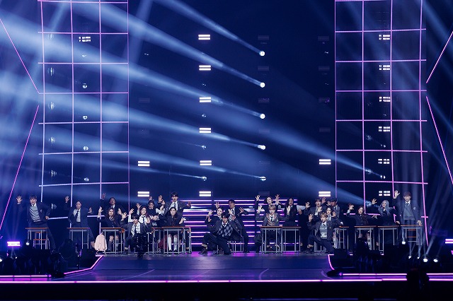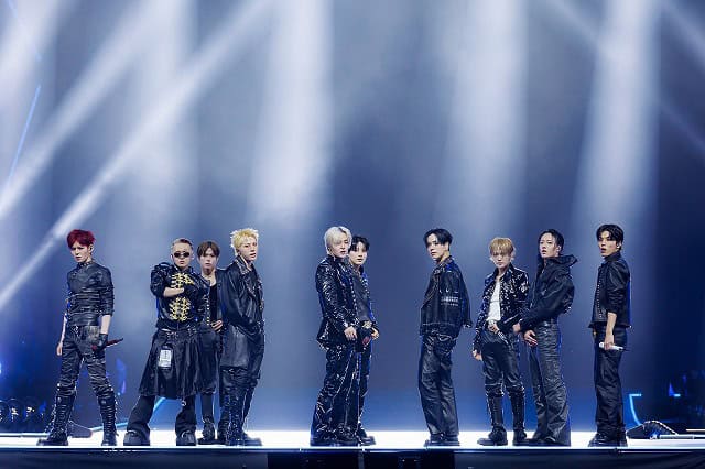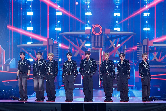 メンバーたちが自分たちの曲を聴きながらドライブする様子のVTRからスタート。そしてステージにはスタッズのあしらわれたレザージャケット姿のTREASUREが登場。10人の迫力ある群舞やラップで会場を一気に盛り上げました。