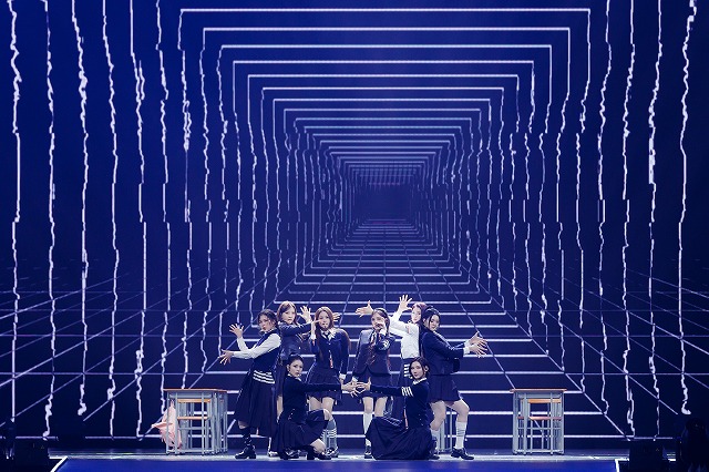 制服姿で6人が登場。3rdミニアルバム『COLOR』のタイトル曲を、爽やかなダンスとともに披露しました。