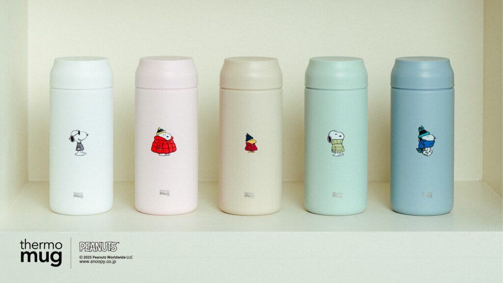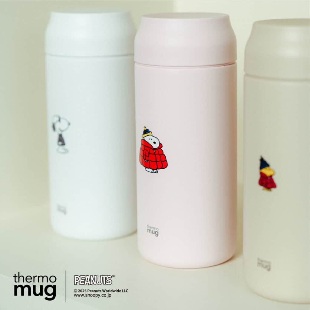 スタイリッシュなデザインと優れた保温&保冷機能を備えるキッチンウェアブランド「thermo mug(サーモマグ)」から、ピーナッツモデル第6弾が登場! 今回は使いやすいと好評なボトル「オールデイ」に、冬の装いに身を包んだ「スヌーピー」と「ウッドストック」がワンポイントのイラストであしらわれています。体が芯から冷える冬、温かい飲み物を持ち歩くのにぴったりのボトルですね♩