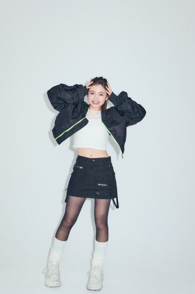 アクティブなフェスが好きです。だから参加する時は、出演する推しアーティストのイメージに合わせてスタイリングします。特別な日なので、私の中では“挑戦”のデイリーには着ないファッションアイテムを選ぶことも多いかも。今日はヘルシーを意識してちらりと肌見せ&タイツ×ルーズソックスにトライ!