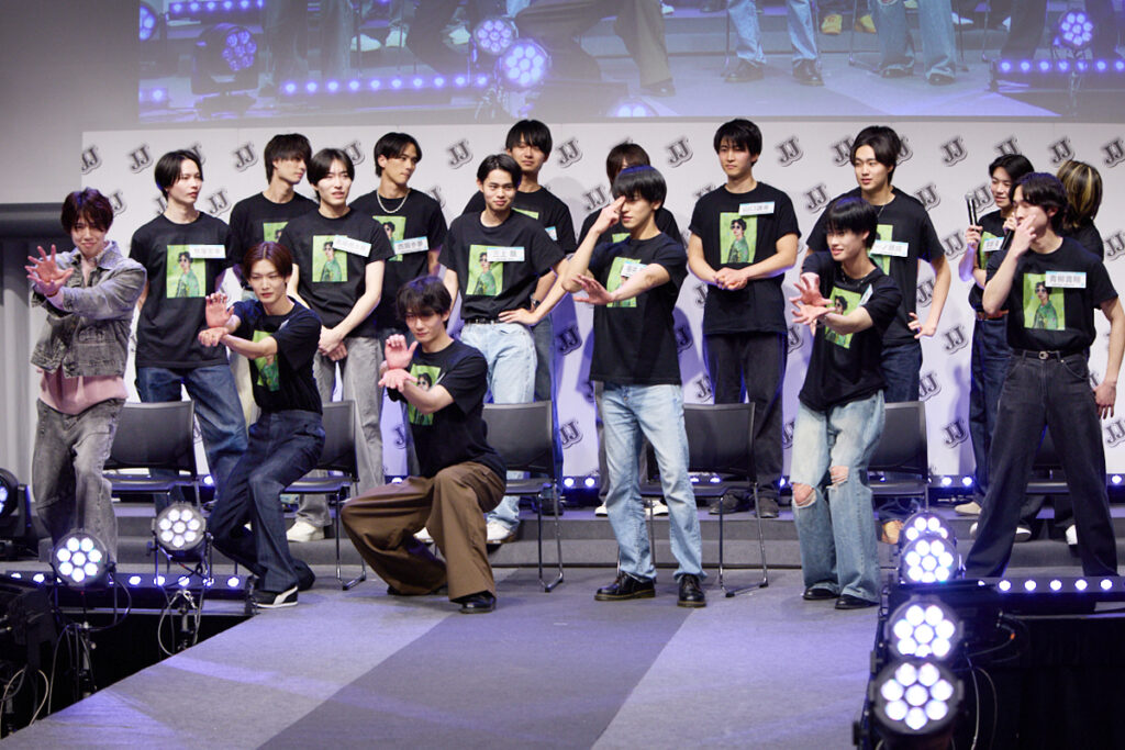 「JJnet記事掲載権」をかけておこなわれた「ジェスチャービンゴ」では、6人1組の計3チームに分かれてポーズを揃えるゲームに挑戦。メンバーのポーズが揃った数が多いほど多くのポイントをもらえるということで、各チームで気持ちをひとつにゲームに挑戦。「仮面ライダー」「ウルトラマン」「ドラゴンボール」など、さまざまなお題に果敢に挑むファイナリストたち。シンキングタイムに他チームのガヤが飛び交うなどの“合法的妨害行為”に負けることなく優勝を手にしたのは……中田凌多、藍沢晃多、齋藤柚希、桜井 晃、青柳貴翔にJ-BOY2025グランプリの大和蒼空を加えたCチームでした!