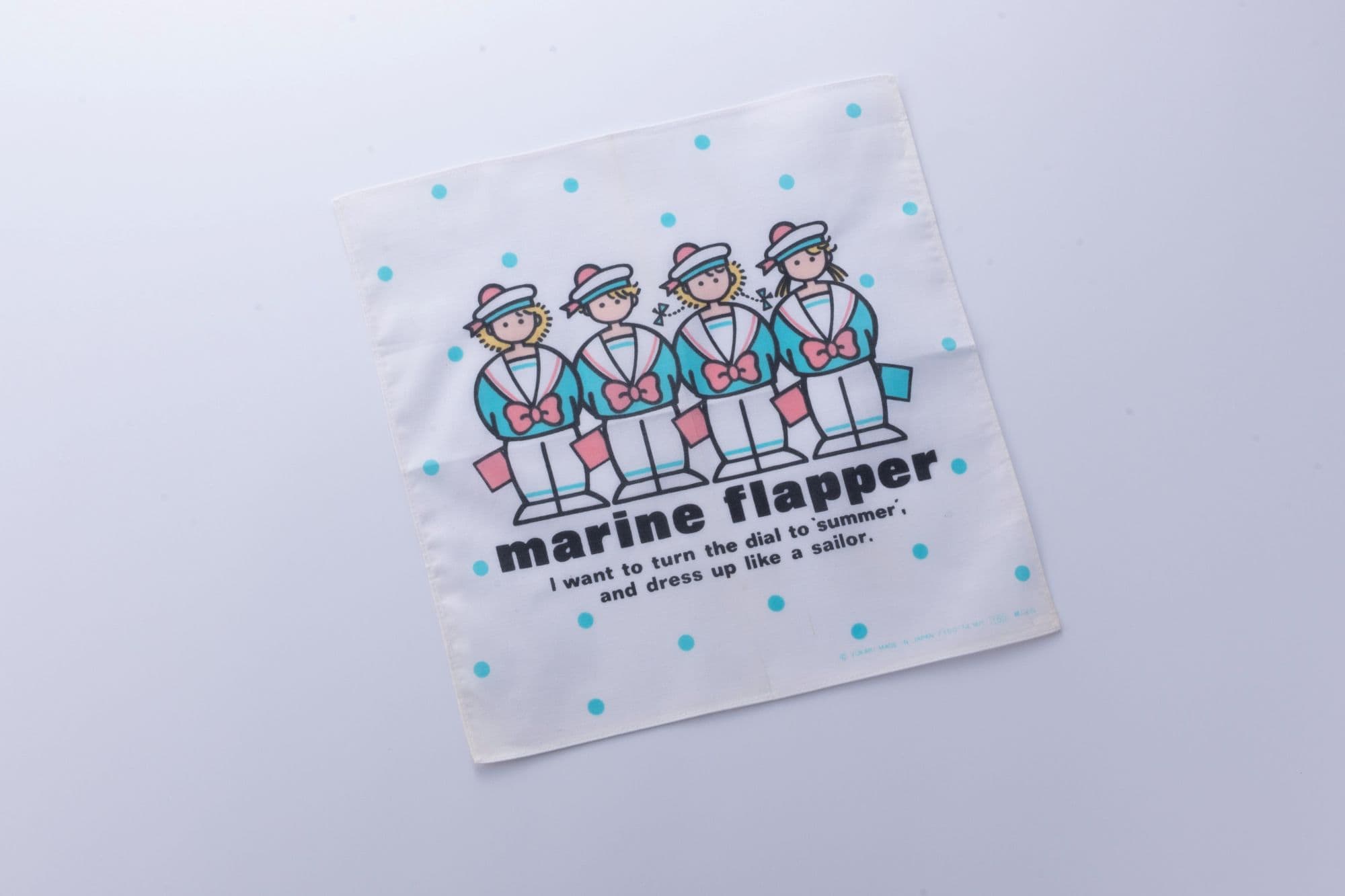 ゆかしなもん先生:当時、こうしたマリンテイストなファッションが流行していましたし、時を同じくして’83年頃から女子大生ブームが起き、女子大生で構成されたアイドルグループ「おニャン子クラブ」が登場。デビュー曲「セーラー服を脱がさないで」の大ヒットをはじめ、絶大な人気を誇っていました。彼女たちの衣装が、一大ブームとなった「セーラーズ」という水兵さんのキャラクターがデザインされたものだったんですよ。