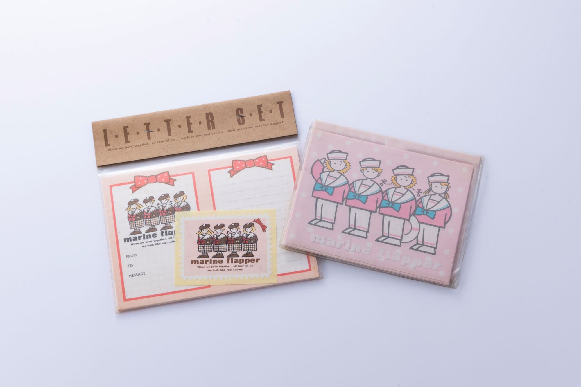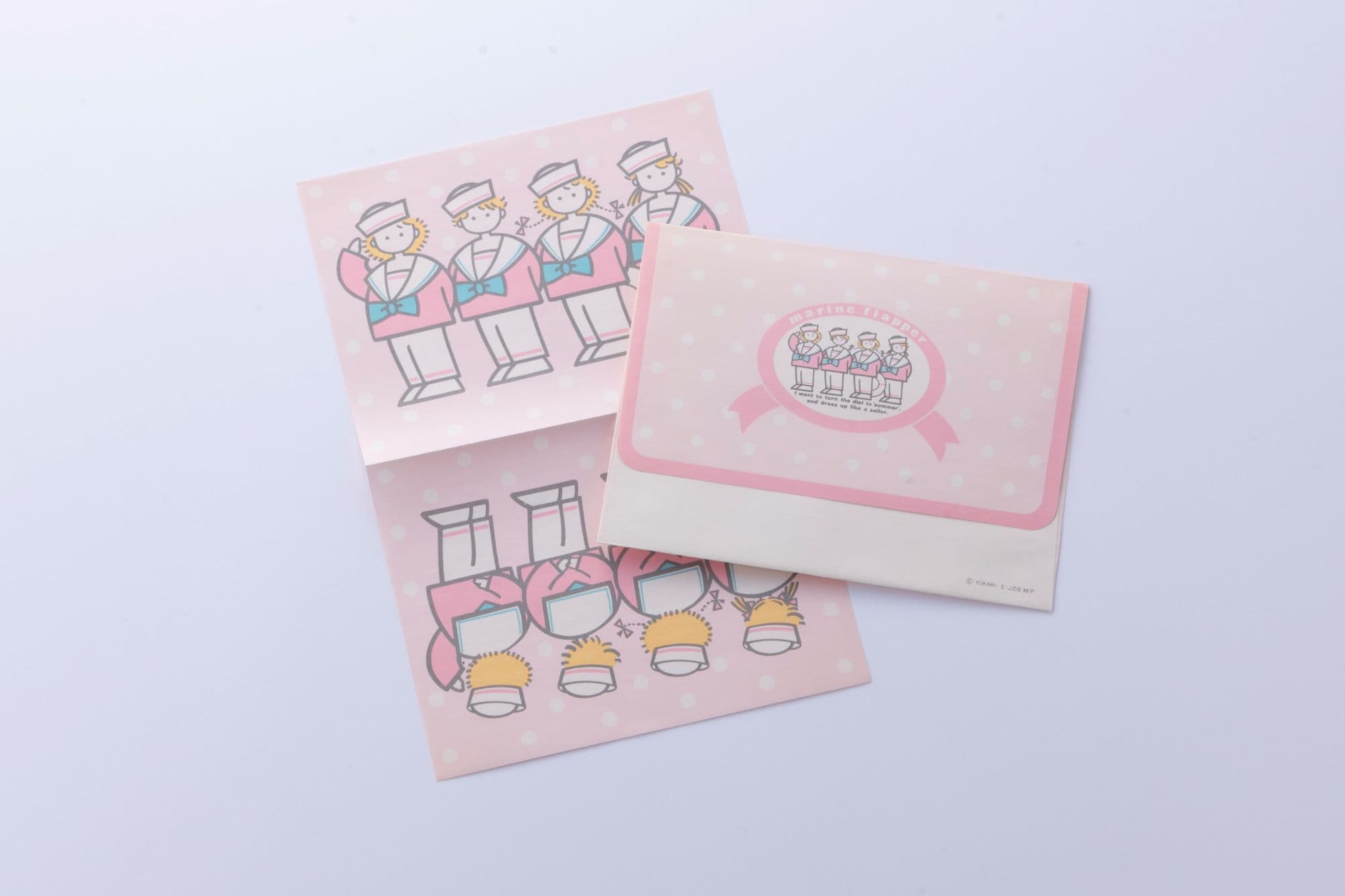 ゆかしなもん先生:おなじみのレターセットです。この2種類を見比べると、ちょっとポーズが違ったり、いちばん左の子も違う。意外とメンバーの入れ替えがあるっていうことに、私も今気づきました(笑)。