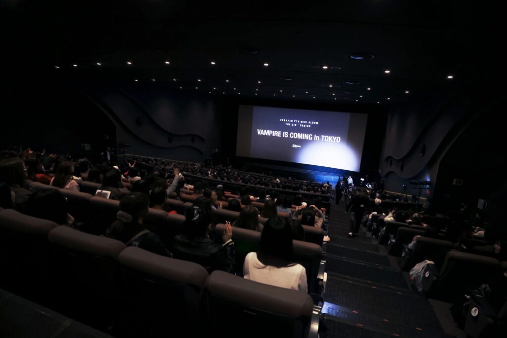 上映されたのは、7人のヴァンパイアが織りなす物語。幻想的な世界の中で見せる鋭いまなざしは圧巻で、スクリーン越しでも強い存在感を放っていました。一方で、最後には思わず笑ってしまうNGシーンも流れ、かっこいいENHYPENと可愛いENHYPENの両方を楽しめる時間に。振り幅の大きな魅力に、客席は息をのむほど夢中になって見入っていました。