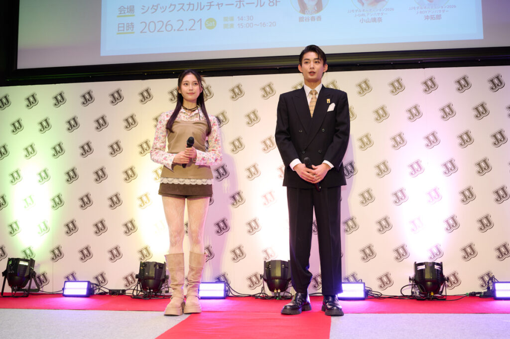 この日の会場には、MCの舘谷春香さんとともにJJモデルオーディション2026 公式アンバサダーの2代目J-BOYの沖拓郎、2代目J-GIRLの小山璃奈も登場。昨年の自身の受賞時を振り返りつつ、J-GIRL、J-BOYの先輩として、晴れ舞台に臨む“後輩”たちにエールを送る場面も見られました。