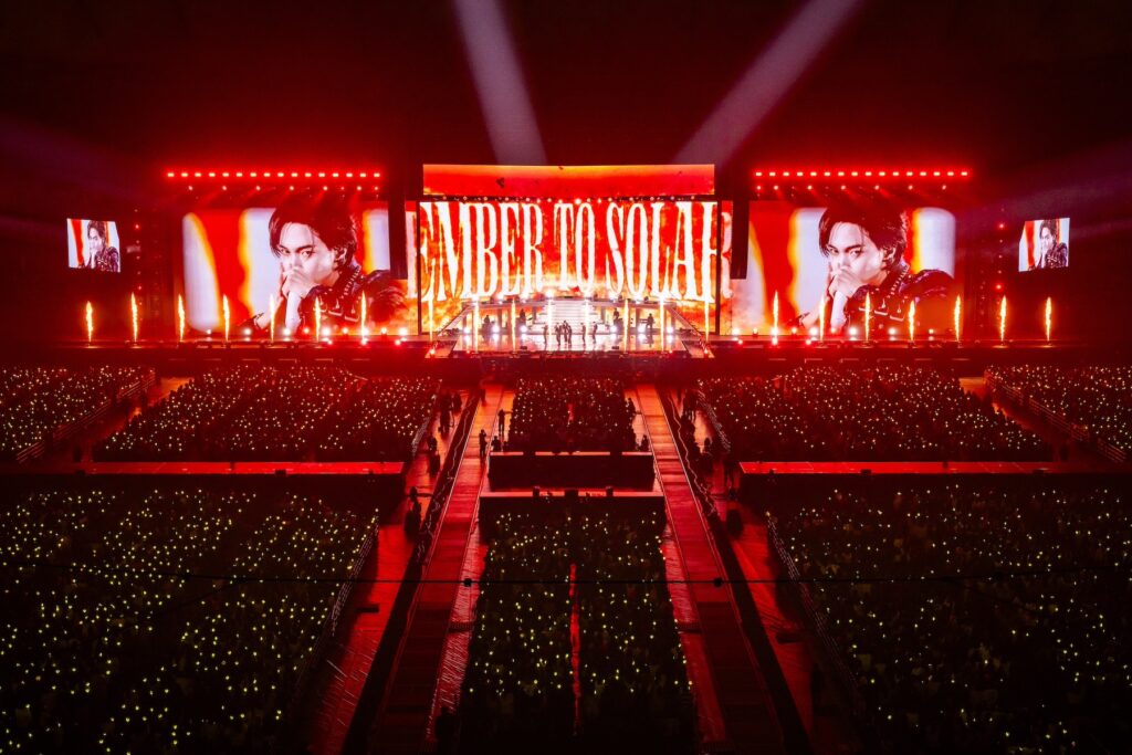 1曲目に披露したのは、2025年にリリースした「Fame」。WONBINの叫び声で歓声が上がり、BRIIZEの興奮が手に取るように感じられます。続く「Siren」でもBRIIZEの掛け声が東京ドーム中に轟きます。SUNGCHANの「いくぞ!」という掛け声や、WONBINがジャケットをはだけさせるシーンでは、ひと際大きな歓声が上がりました。3曲目は「Enber to Solar」。スクリーンに「Enber to Solar」の文字が浮かび上がり、パフォーマンスがスタート。ペンライトが一気に赤色に染まり、スクリーンには溶岩のような映像が映し出されます。ダンスブレイクではひと際大きな歓声が上がります。