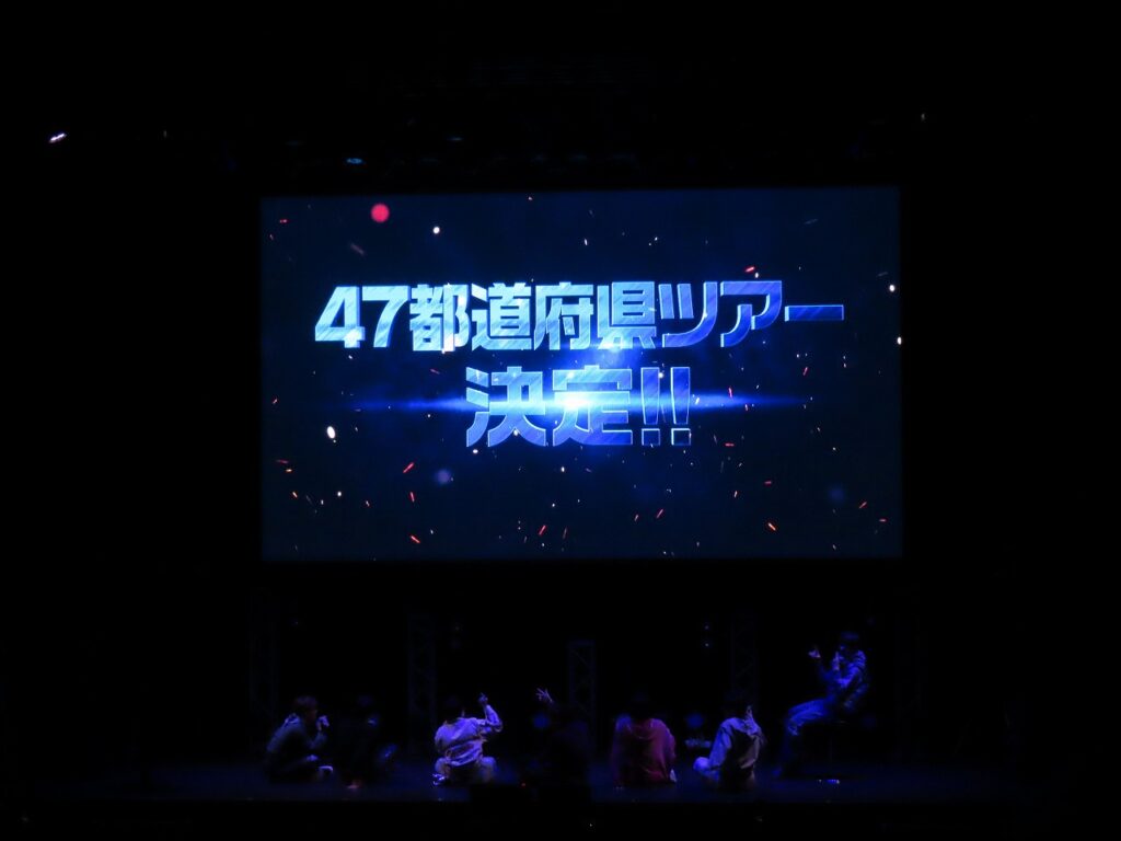 FUMAの「aoenから大切なお知らせがあります」の呼びかけで、ステージ上のモニタに突如映像が流れ出し、47都道府県をまわるaoen自身初のツアーを開催することが電撃発表されました。ビッグサプライズに会場はどよめき、大きな歓声が巻き起こりました