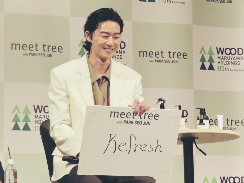 ヒノキなどの国産木材から採れた精油を配合したスキンケア製品を扱う「meet tree」のハンドソープと、日本のお寿司屋さんで出合ったというパク・ソジュンさん。お気に入りアイテムの使い方やスキンケアルーティンなど、気になるエピソード満載のイベントの様子をレポートします!