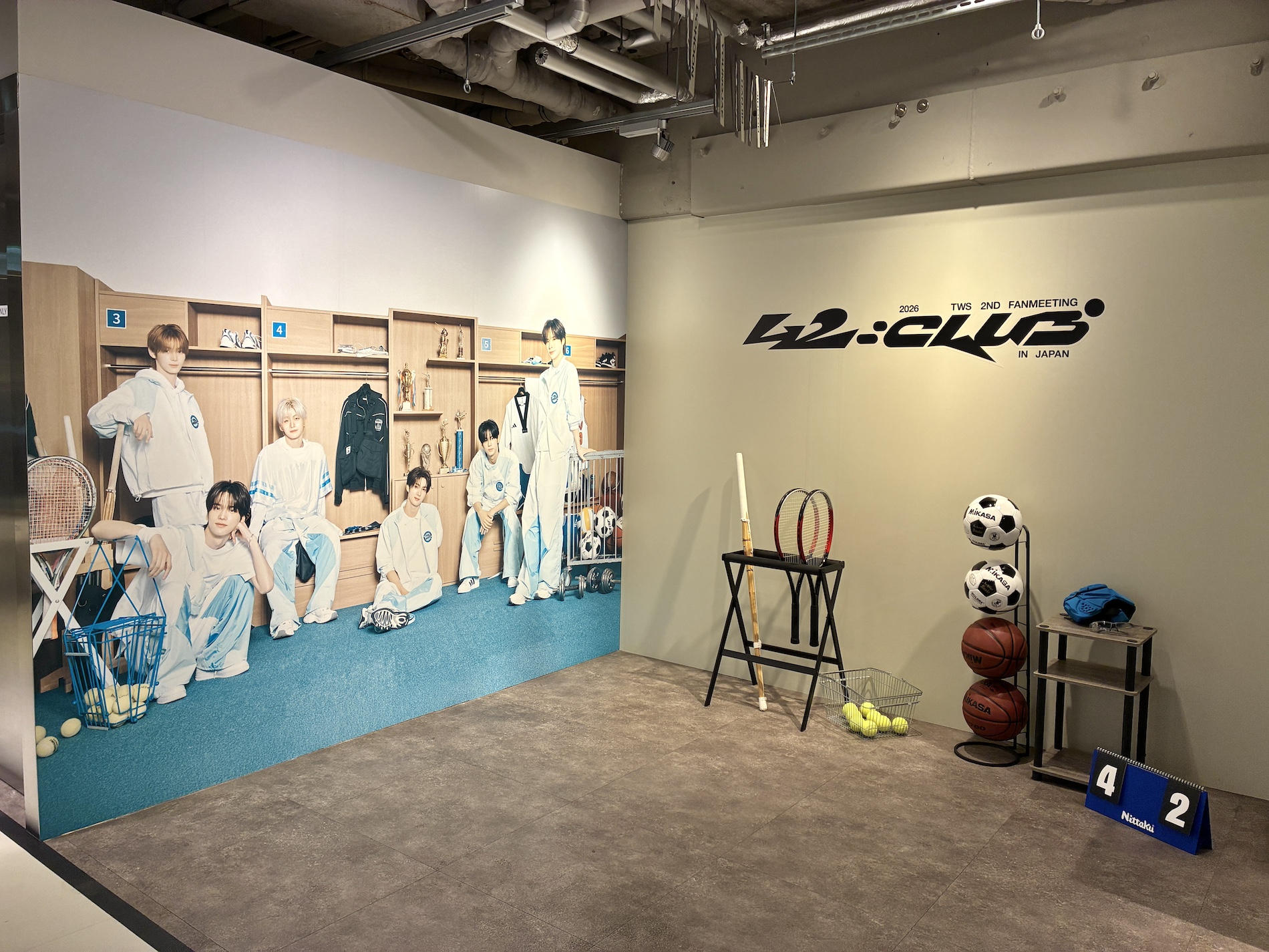 『2026 TWS 2ND FANMEETING <42:CLUB> IN JAPAN』POP-UP STOREは、ファンミーティングのイメージを踏襲し、運動部を連想させるような装飾になっています。会場を入ると床にはトラックのような装飾が床に施されており、思わずテンションが上がってしまいます♡