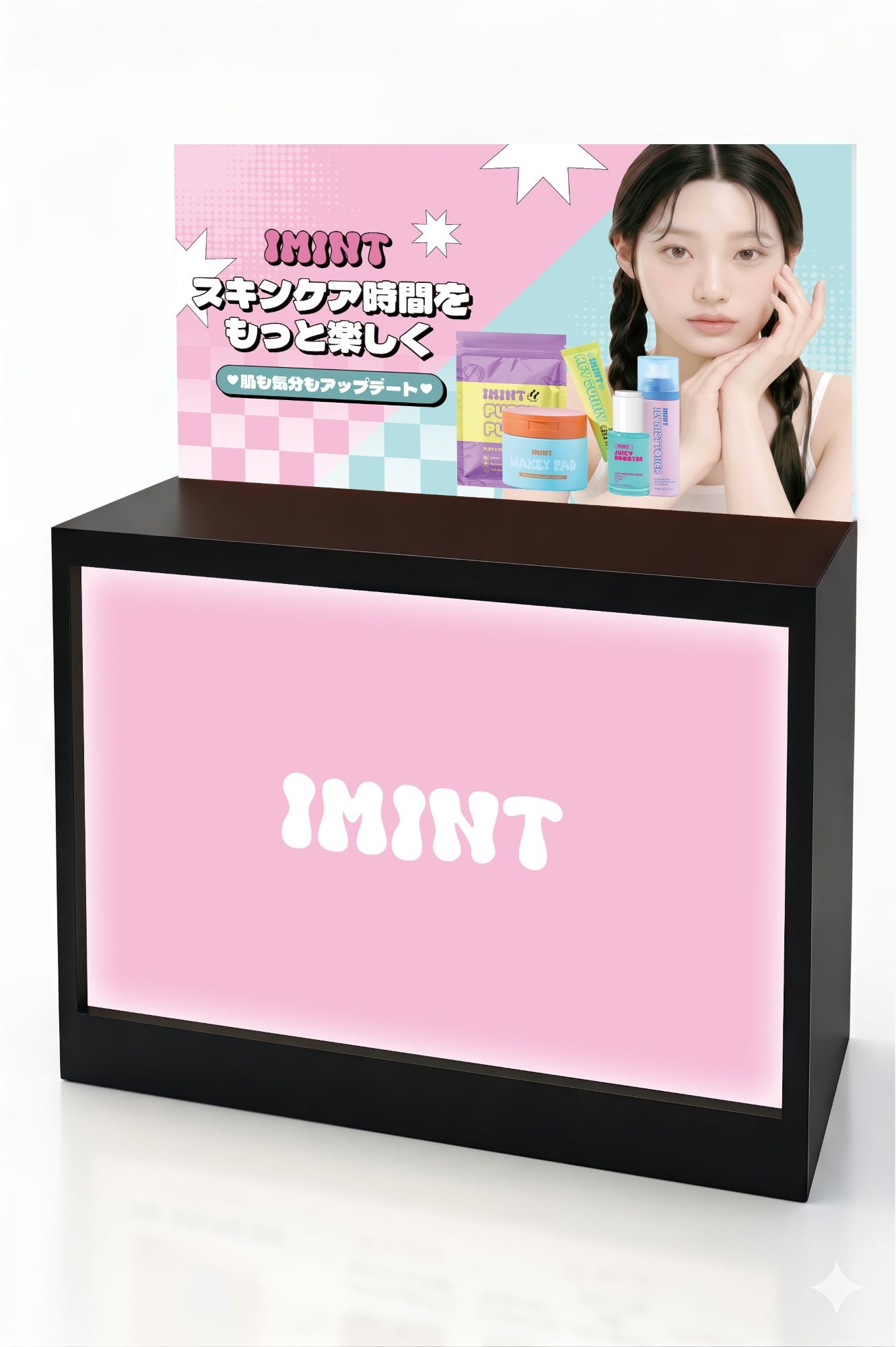 IMINTのブースでは、ブランドの世界観を体感できる空間演出とともに、実際に商品をお試しいただけるタッチ&トライ形式を展開。SNSと連動したキャンペーンも実施します。