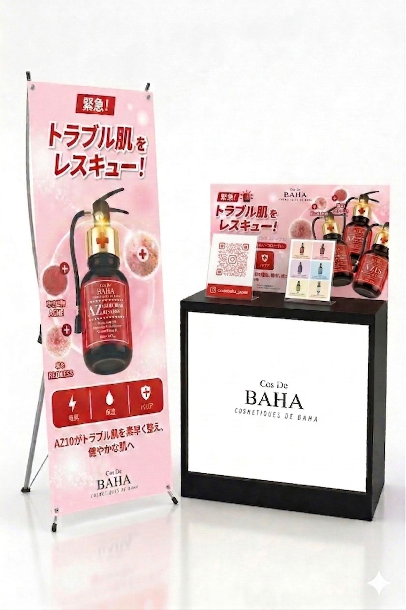 一方、韓国発スキンケアブランド「Cos De BAHA」のブースでは、ブランドを代表する美容液を中心に展示し、実際に手に取ってお試しいただけます。