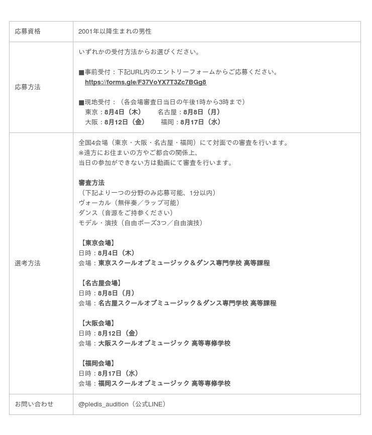 エンターテインメントライフスタイルプラットフォーム企業HYBE傘下のレーベルで人気K-POPグループを多数輩出している「PLEDIS ENTERTAINMENT」のオーディションを開催いたします。