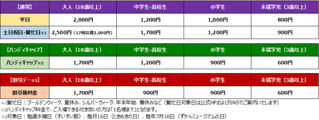 ◎3歳未満は無料で入館できます。