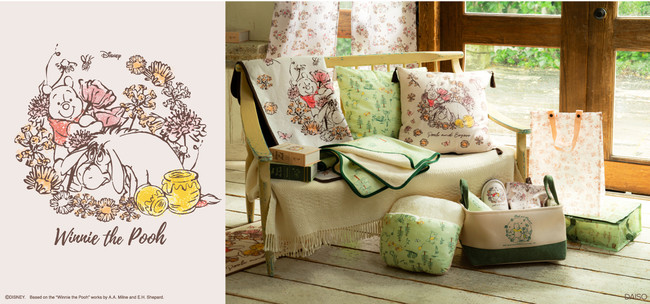 本シリーズは、ディズニーの人気キャラクターである「くまのプーさん」となかまたちを手描きタッチで表現、グリーン、ベージュなどの落ち着いた色味と、8月3日の「はちみつの日」にちなんだデザインが特徴です。収納ボックスや掛け時計、アロマディフューザーなどのリビング用品をラインアップし、フットウォーマーやブランケットなどの防寒グッズも9月以降に展開予定です。