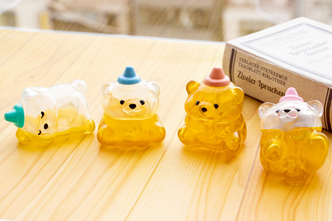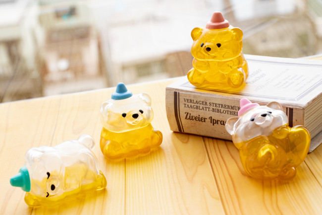 眺めれば眺めるほど、愛着が湧くこと間違いなしの「はちみつボトルのベビィベア」は7月28日(木)より全国のカプセルトイコーナーにて順次販売開始。