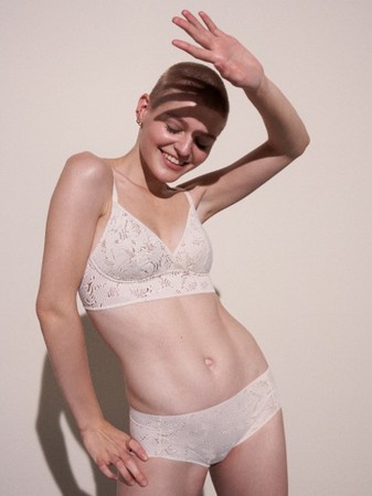 レースというと甘くフェミニンな印象ですが、「sloggi ZERO Lace」に使用しているのは、メッシュのベースにボタニカルな柄が浮かび上がる洗練されたデザイン。この春夏に新登場し、今の時代にマッチする都会的でクリーンなムードでご好評をいただいています。