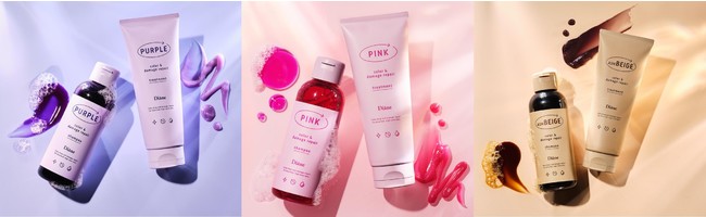 今回発売となる「カラーシャンプー&トリートメント」は髪色に合わせて選ぶことができる、PURPLE(パープル) ・PINK(ピンク) ・ASH BEIGE(アッシュベージュ) の3種類。