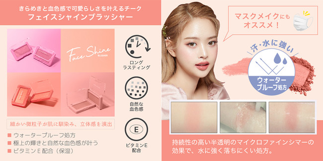 「フェイスシャインブラッシャー」は肌馴染み良く、自然な血色感とツヤ、立体感を生み出すチークカラー。