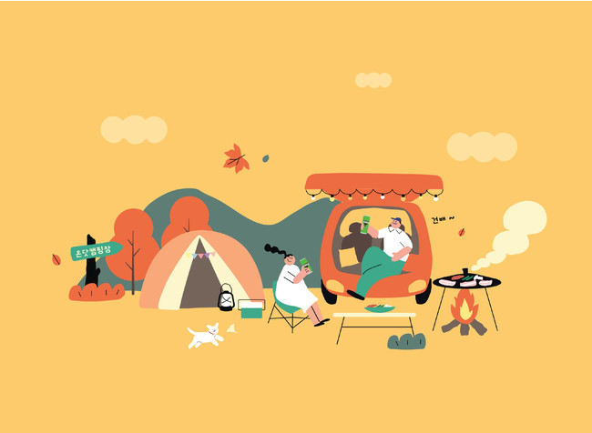 ここからは、今回のボックスデザインと先行公開中のアイテムをご紹介。2022秋のボックスデザインは韓国で流行中のキャンプの様子。韓国ドラマにたびたび登場するチャバク(キャンピングカーで楽しむキャンプのこと)をモチーフに、秋の様子を描きました。