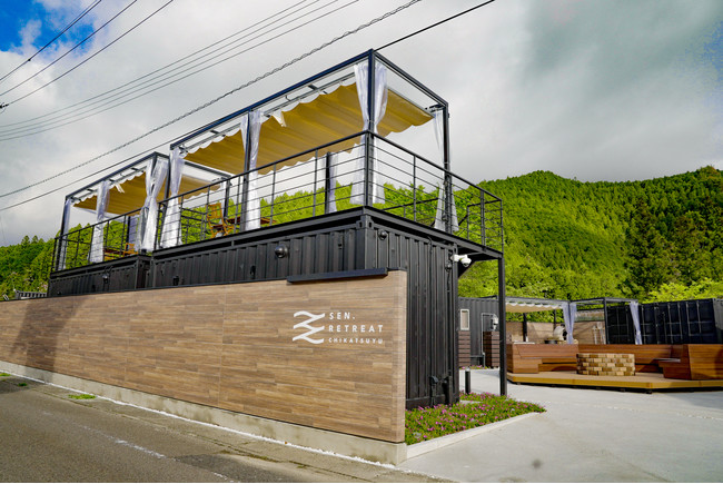 熊野古道の主要参詣道「中辺路」沿いに泊まり歩ける宿を計4カ所作る計画で、2カ所目として、2022年4月28日に開業したのが「SEN.RETREAT CHIKATSUYU」。コンセプトは「遊ぶ、微笑む、そしてつながる宿」。バーベキューができるプライベートガーデンや、焚き火を囲めるテラス、宿泊客自身で生地からこねて焼けるピザ窯などを備えています。非日常にワクワクしたり、気の置けない仲間や家族とゆったり過ごしてホッとしたり、リラックスできる空間となっています。また、コンテナ1棟を1つの客室としているため、外から直接部屋に出入りでき、密を避けられます。「熊野古道を訪れる観光客=トレッキング目的のみ」という現状を変えるべく、さまざまな観光目的の方に楽しんでいただける宿を目指します。