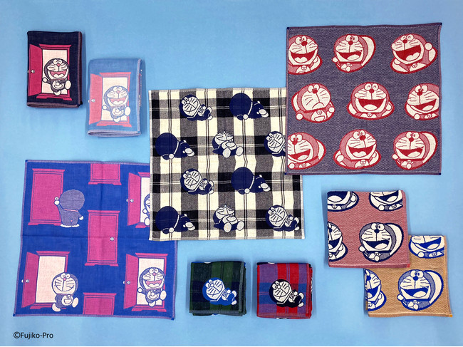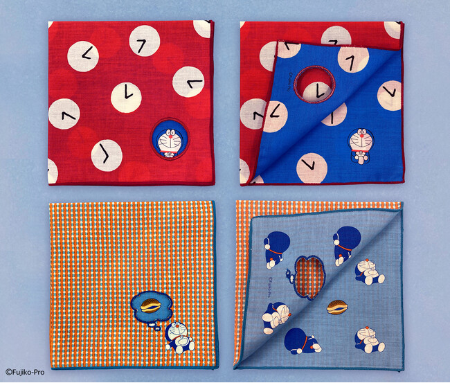 両面にデザインがプリントされ、折りたたむと枠からモチーフをのぞくことができる2枚合わせのハンカチや、ドラえもんの顔をめくるとどら焼きが隠れているタオルハンカチなど、ちょっとした仕掛けが楽しいシリーズです♪