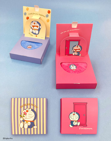 ギフトにも最適なボックス入りタオルハンカチもご用意。9月3日のドラえもんの誕生日は、身近な方とプレゼントを交換して一緒にお祝いするのもいいかも!