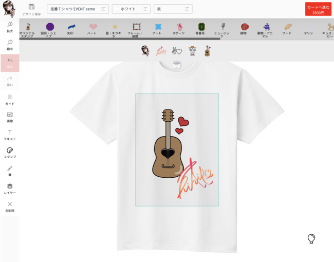 サイト内のデザインツールを使用して、スタンプを配置するだけで