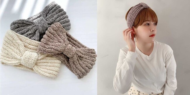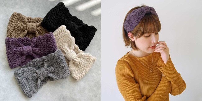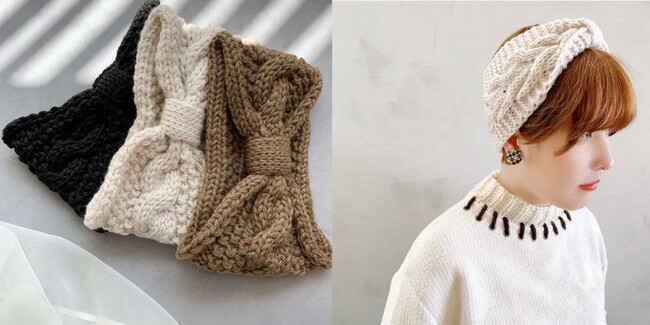 幅広でもこもことした素材感が可愛いニットターバンは3タイプご用意しております。