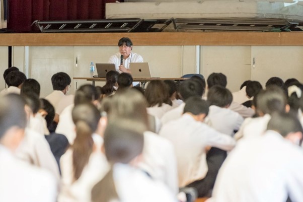 川口伸明による講演は、すでに、大手企業グループや経済団体、大学のゼミや学会・国際会議の特別講演やパネルディスカッション、政府・行政機関におけるヒアリング等数十件に及んでおりますが、高校生向けの対面授業としては初めて行なわれたものです。