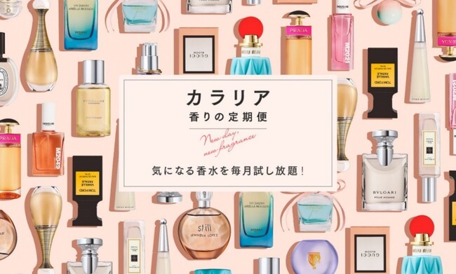 カラリアは、2019年1月よりサービスを開始した、月々1,980円(税込・送料無料)からお試しいただける“香り”のサブスクリプションサービスです。約1,000種類の香りアイテム(人気ブランド香水やルームフレグランス、バスグッズなど)の中から毎月好きな商品を選ぶことができ、香水は1ヶ月使い切りサイズのアトマイザーでお届けしています。