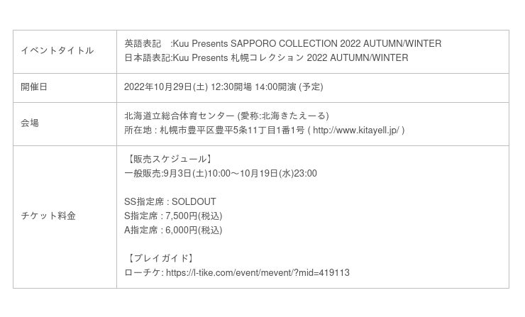 【Kuu Presents SAPPORO COLLECTION 2022 AUTUMN/WINTER 開催概要】