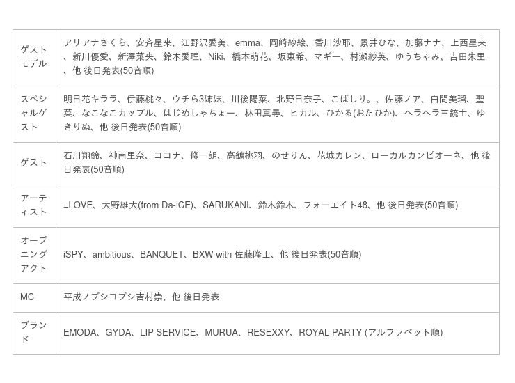 さらにゲストモデルとして、マギー、emma、坂東希の3名が出演。また、ゲストには修一朗、ローカルカンピオーネ、高鶴桃羽(たかつる ももは)、石川翔鈴(いしかわ かれん)、のせりんら若い世代から人気急上昇中の5組が出演します。