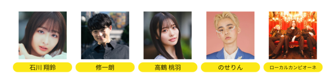 TikTokフォロワー数約200万人、1投稿の平均再生数150万回以上を誇る大人気クリエイターの修一朗、楽曲にあわせて創作したオリジナルのダンス動画が次々にバズり、数々のダンストレンドを生み出している元ダンサー3人組クリエイターのローカルカンピオーネ、ロシアの名門バレエ学校に留学し、様々なコンクールでの受賞経験をもつ北海道出身の現役バレリーナの高鶴桃羽、恋愛リアリティーショーへの出演で一躍話題となり、映画やドラマで活躍している北海道出身の石川翔鈴、SNSに投稿するジャンルレスなファッションが注目され、Z世代のネクストアイコンとして話題のモデル・のせりんの出演が決定しました。高鶴桃羽とのせりんは、現在ABEMAで放送中の『オオカミちゃんとオオカミくんには騙されない』に出演しており、特に中高生を中心とした若い世代から注目が集まるステージとなります。