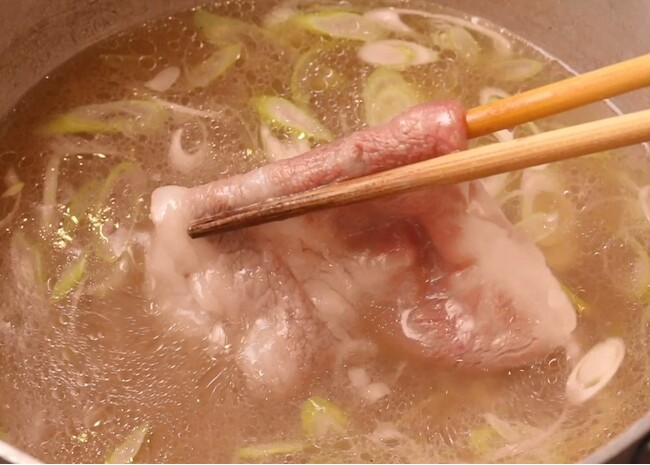 牛づくりのマイスターとも言うべき神戸牛生産者おすすめの食べ方は、「肉すい」※。おすすめの理由は、なんといっても「神戸牛の最大の特徴でもある甘みのある脂がだしに溶けて、だしごと最後の一滴まで飲み干せることができ楽しんでいただけるから。」と生産者の谷口さんは語ります。